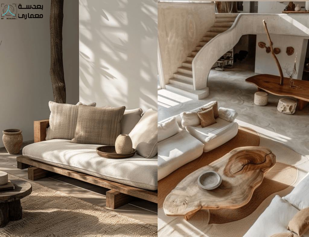 - أسطح خشبية غير مُعالجة مثل الطاولات الخشبية الكبيرة يمكن دمجها مع الوسائد المنقوشة و الستائر الكتان.