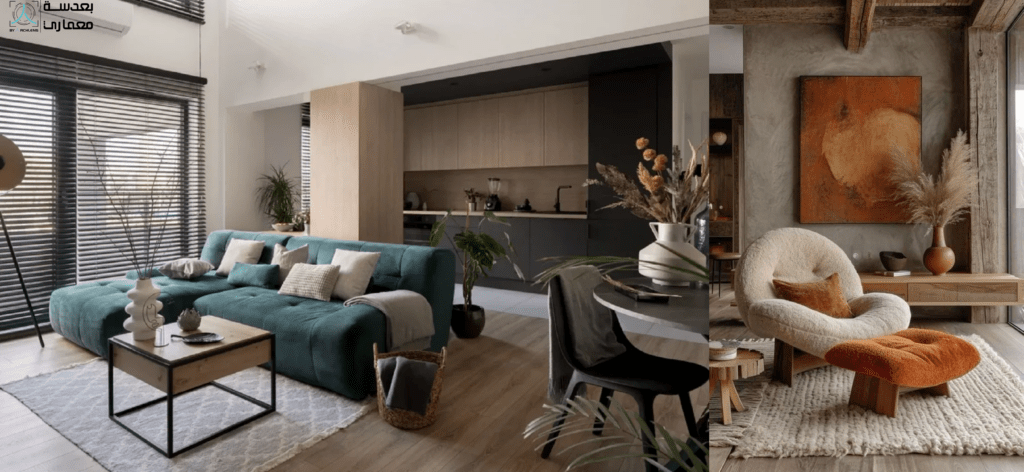 زي الخشب الفاتح، القطن، الكتان، والصوف. وده بيضيف دفء للمكان وبيحافظ على الاتصال بالطبيعة.